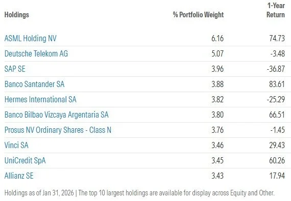 Top 10 Eurozone holdings, bron: Morningstar