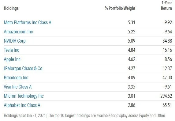 Top 10 V.S. holdings, bron: Morningstar